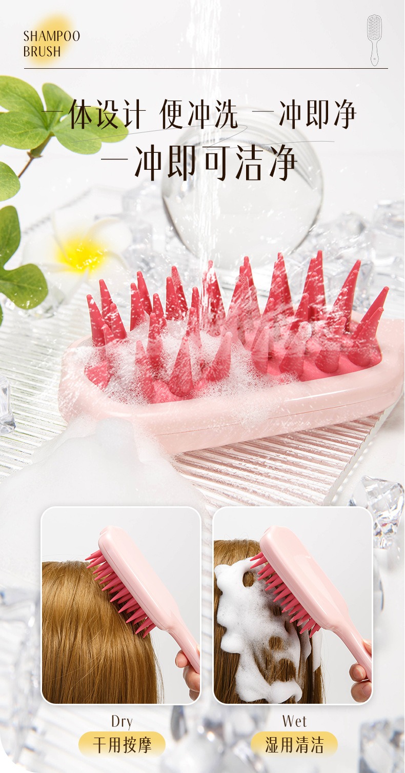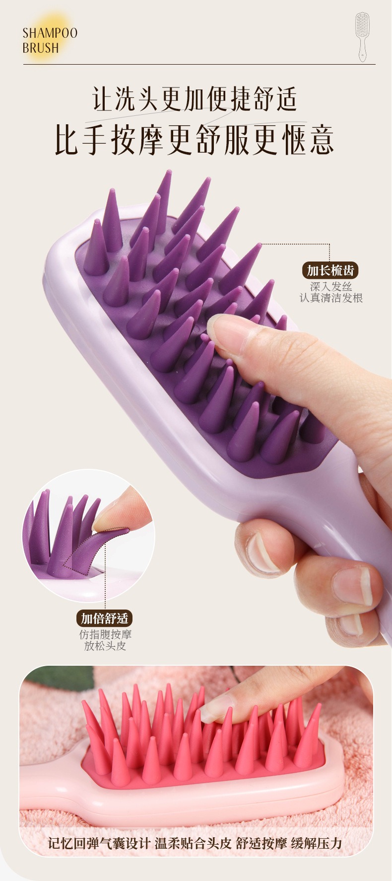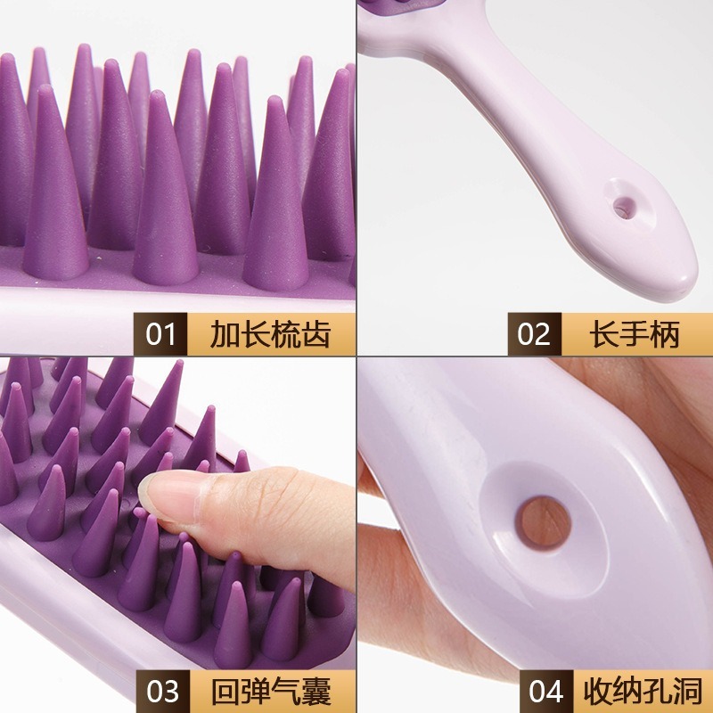 Product details of Long handle shampoo brush massager silicone coarse teeth with handle shampoo comb deep cleaning