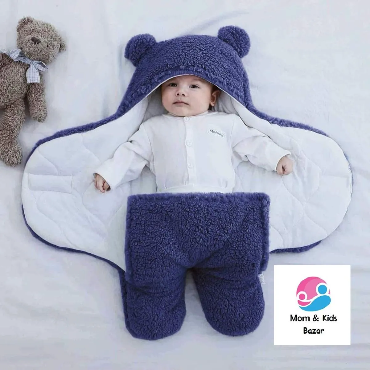 - Newborn Outdoor Windproof Plush Solid Colour Soft Baby Hold Blankets Infant Cocoon Wraps Cotton Winter Sleeping Bag Multicolor For (0-1 Year )