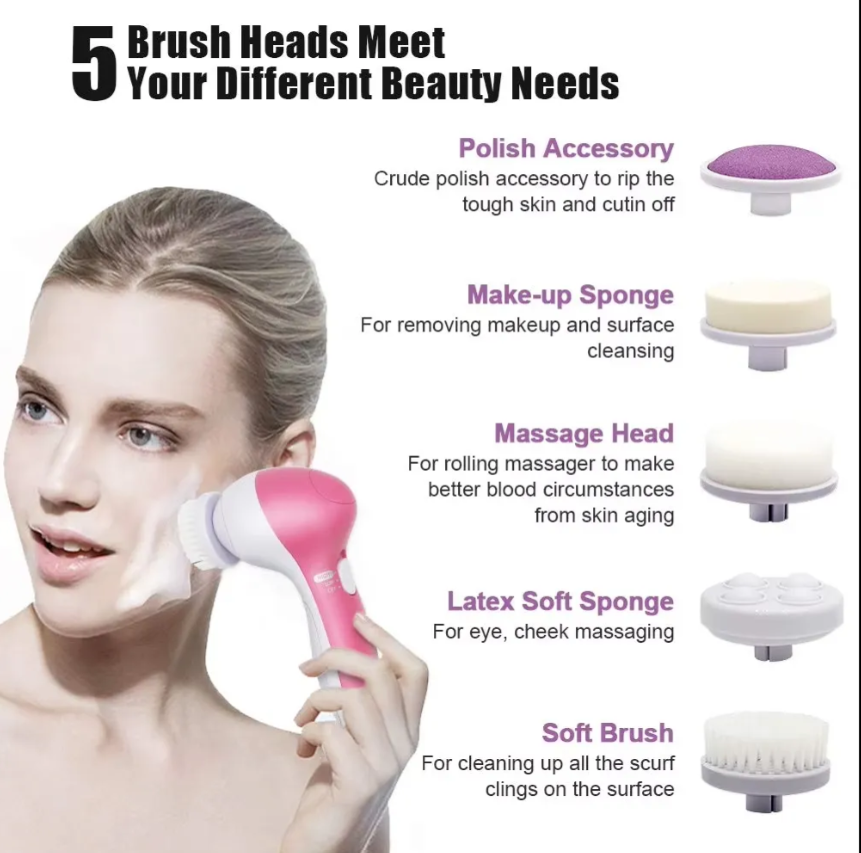 Electric Facial Cleaner 5 IN 1 Face Cleansing Brush Wash Machine Spa Skin Care Massager Blackhead Cleaning Facial Cleanser Tools.